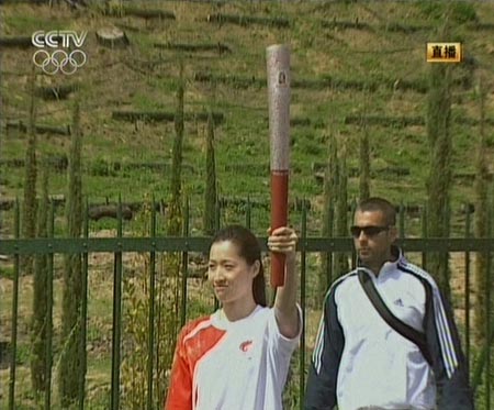圖:前奧運(yùn)冠軍羅雪娟傳遞北京奧運(yùn)圣火