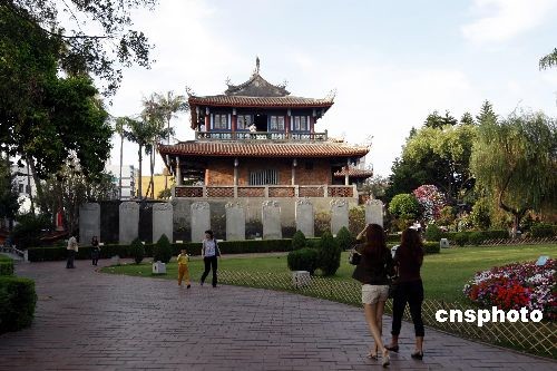 赤嵌樓位于臺(tái)南市中區(qū)赤嵌樓與民族路交叉口,原為荷蘭人所建。早期的漢人稱(chēng)荷蘭人為紅毛,所以也把赤嵌樓叫做紅毛樓,或稱(chēng)番仔樓;目前赤嵌樓列為國(guó)家一級(jí)古跡,也是臺(tái)南代表性的名勝,赤嵌樓的文物與建筑歷經(jīng)荷蘭、明鄭及滿清時(shí)代,初建于公元1650年,其建材據(jù)說(shuō)皆由荷蘭人自海外運(yùn)來(lái),稱(chēng)為普羅民遮城,系荷蘭人在漢人起義抗荷的郭懷一事件后所興建的。在鄭成功攻占臺(tái)灣以后,曾經(jīng)改普羅民遮城為“東都承天府”,并以赤嵌樓做為全島最高的行政機(jī)構(gòu),隔臺(tái)江與今安平古堡相對(duì),十分具有歷史與文化的價(jià)值。中新社發(fā) 杜洋 攝