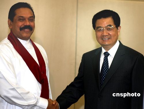 圖:胡錦濤會(huì)見(jiàn)斯里蘭卡總統(tǒng)拉賈帕克薩
