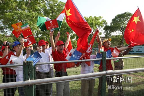 4月17日凌晨0時(shí)55分,北京奧運(yùn)圣火抵達(dá)印度首都新德里,拉開了北京奧運(yùn)圣火“和諧之旅”第十一站的序幕。從17日下午4時(shí)起,傳遞活動將在新德里印度總統(tǒng)府和印度門之間的拉吉大街上進(jìn)行。70名火炬手將沿著這條三公里長的大街傳遞圣火。圖為印度華人華僑在歡迎北京奧運(yùn)圣火。中新社發(fā) 沈晨 攝