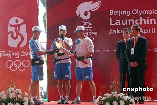 4月22日下午2時(shí)15分,雅加達(dá)特區(qū)省長(zhǎng)法烏茲手持“祥云”火炬跑出第一棒,北京奧運(yùn)圣火在雅加達(dá)的傳遞正式啟動(dòng)。北京奧運(yùn)圣火雅加達(dá)站傳遞從蘇加諾體育中心東門開始,八十名火炬手圍繞其中的蘇加諾體育場(chǎng)進(jìn)行七公里左右的傳遞。八十位火炬手中,有印尼現(xiàn)役和退役優(yōu)秀運(yùn)動(dòng)員、贊助商代表、政府官員、社會(huì)活動(dòng)家等。