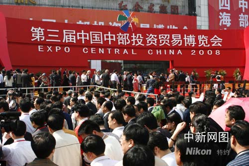 4月26日上午,第三屆中國中部投資貿(mào)易博覽會(簡稱中博會)在武漢隆重開幕。在開幕式上,中共中央政治局委員、國務(wù)院副總理王岐山宣布第三屆中博會開幕,香港特別行政區(qū)行政長官曾蔭權(quán)、澳門特別行政區(qū)行政長官何厚鏵等出席。來自113個國家和地區(qū)的政府官員、駐華使節(jié)、商協(xié)會、知名企業(yè)代表和國內(nèi)商協(xié)會、企業(yè)代表共57219人將參加為期3天的中博會,將有160家投資企業(yè)和287個投資商將與中部六省的1358家項目進(jìn)行了“一對一”,“面對面”洽談。作者:艾啟平