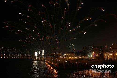 圖:澳門舉行煙花匯演慶祝奧運(yùn)火炬?zhèn)鬟f(2)