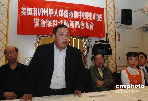 當(dāng)?shù)貢r(shí)間5月12日,美國南加州主要華人華僑團(tuán)體向僑界發(fā)出緊急賑災(zāi)倡議,呼吁華人華僑向四川汶川大地震災(zāi)區(qū)踴躍捐獻(xiàn)。中新社發(fā) 張煒 攝