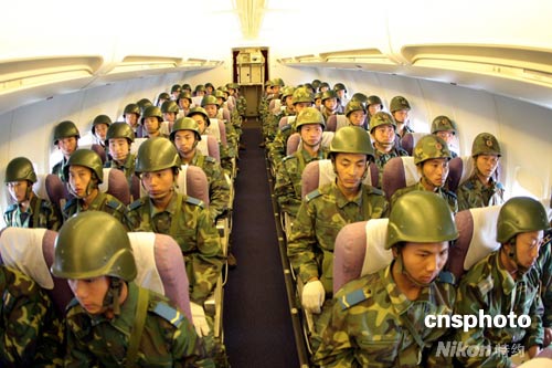 救災(zāi)官兵乘飛機(jī)飛赴災(zāi)區(qū)。譚 超 張雷 攝影報道
