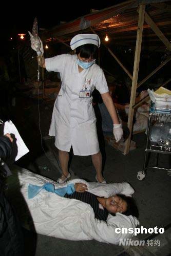 圖:醫(yī)務(wù)工作者救助來(lái)自都江堰地震傷員