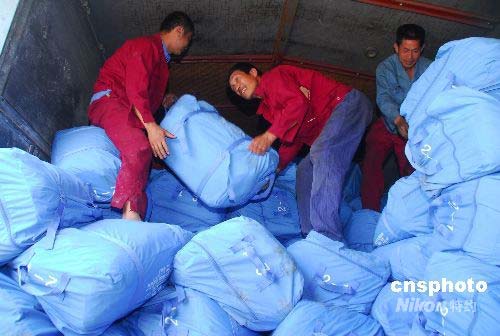 圖:安徽1.5萬頂帳篷緊急運往四川災區(qū)