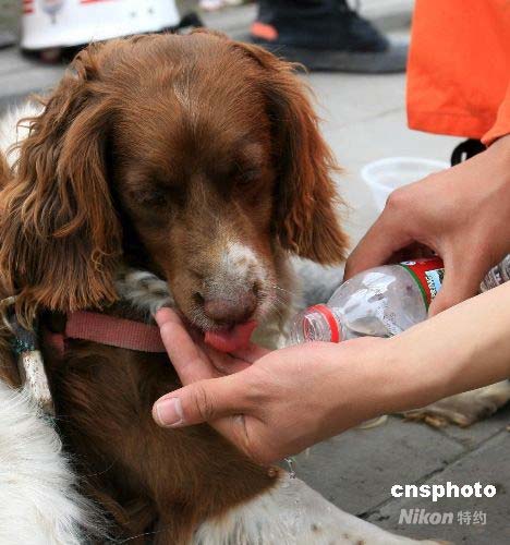 組圖:消防搜救隊給搜救犬喂水(6)