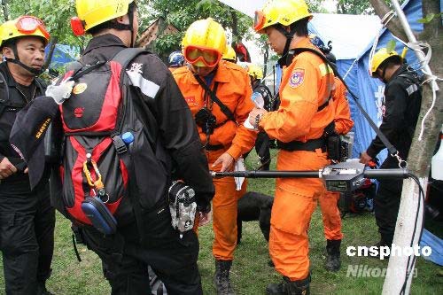 臺灣地震救援隊(duì)進(jìn)入四川重災(zāi)區(qū)救援 來自臺灣的紅十字救援隊(duì),十七日進(jìn)入四川綿竹市漢旺鎮(zhèn)展開搜救工作。中新社發(fā) 齊彬 攝