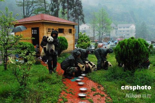 四川發(fā)生大地震后,臥龍保護區(qū)管理局的職工于第一時間將大熊貓轉(zhuǎn)移到安全地帶。在此次地震中,臥龍保護區(qū)管理局的房舍嚴重受損,其中32套大熊貓圈舍中有14套全部損毀,其余嚴重受損。據(jù)悉,工作人員目前正在尋找二到三只下落不明的大熊貓,其余所有熊貓被集中飼養(yǎng)在簡單修復(fù)的圈舍中,但圈舍比較擁擠。國家林業(yè)局和四川省林業(yè)廳已緊急調(diào)撥熊貓食品、藥品,以及保護區(qū)內(nèi)職工急需的帳篷等救援物資,現(xiàn)已繞道送至臥龍自然保護區(qū)。中新社發(fā) 臥龍 攝