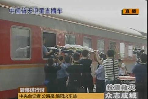 圖:綿陽(yáng)火車(chē)站轉(zhuǎn)移大批傷病員