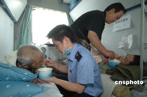組圖:地震災區(qū)首趟運送傷員專列順利抵達重慶(6)