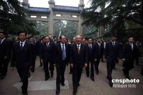 5月27日,中國(guó)國(guó)民黨主席吳伯雄率領(lǐng)的大陸訪問(wèn)團(tuán)拜謁中山陵。他將率團(tuán)在南京、北京、上海三地展開6天的大陸訪問(wèn)行程。中新社發(fā) 盛佳鵬 攝