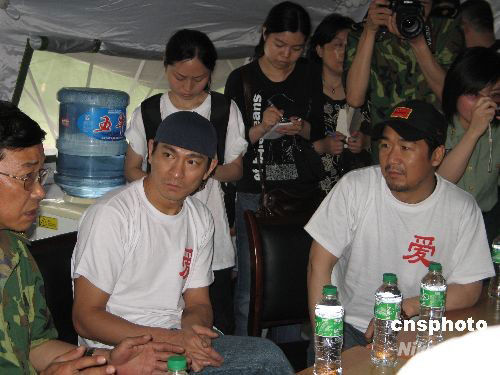 5月29日下午3時許,劉德華、張國立、鄭秀文、葛優(yōu)、馮小剛、陳道明等人來到收治了3000余名地震傷員的成都軍區(qū)總醫(yī)院進(jìn)行慰問。其間,劉德華、張國立、陳道明等人分別發(fā)言。一句句鼓勵的話語,一聲聲親切的問候,給傷員和醫(yī)護(hù)人員帶來了快樂和勇氣。據(jù)了解,這是“5.12關(guān)愛行動”的第二站, 此次活動由劉德華和張國立等人發(fā)起。中新社發(fā) 朱琥姚遠(yuǎn) 攝