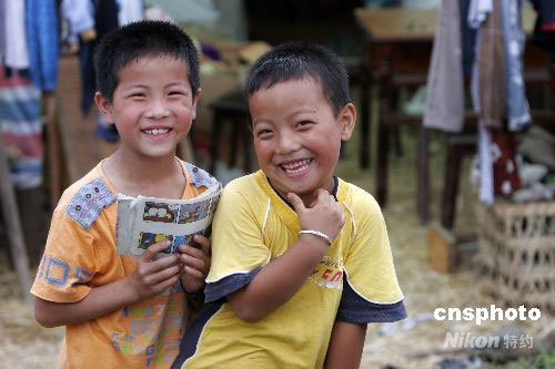 組圖:地震災(zāi)區(qū)孩子漸露童真笑臉(4)