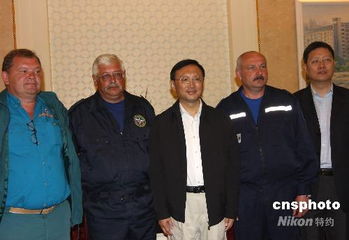 5月30日,中國(guó)外交部部長(zhǎng)楊潔篪前往成都市錦江賓館會(huì)見俄羅斯醫(yī)療隊(duì),高度贊揚(yáng)了他們對(duì)災(zāi)區(qū)民眾的關(guān)心和國(guó)際人道主義精神。中新社發(fā) 黃榮 攝