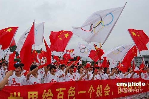6月8日上午,奧運圣火在革命老區(qū)廣西百色市平果縣傳遞,當(dāng)?shù)孛癖姛崆橛邮セ稹0偕青囆∑杰娛律钠瘘c的英雄城市,一九二九年鄧小平在百色領(lǐng)導(dǎo)發(fā)動了著名的百色起義。