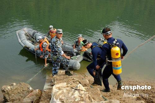 圖:海軍陸戰(zhàn)隊(duì)“蛙人”在震區(qū)危險(xiǎn)水庫排水減壓(4)