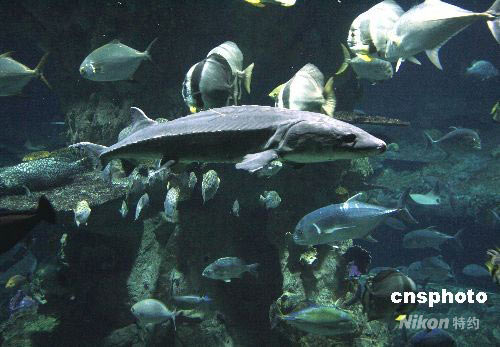 六月二十日,香港海洋公園舉行隆重的儀式迎接尊貴的新成員,國(guó)家一級(jí)保護(hù)及瀕危動(dòng)物的史前魚(yú)類(lèi)中華鱘(圖中)。中華鱘的歷史可追溯到一億四千萬(wàn)年前的白堊紀(jì)時(shí)代,是目前地球上最古老的脊椎動(dòng)物之一,有“活化石”之稱(chēng)。由于其受精卵存活率很低,加上成熟期需要經(jīng)過(guò)十年,所以目前中華鱘處于瀕危狀態(tài)。中新社發(fā) 王麗南 攝