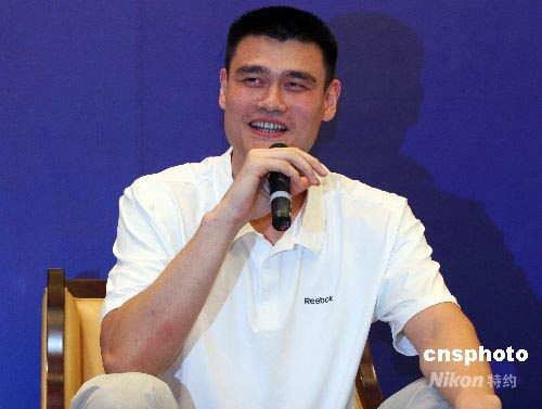 6月26日,剛抵達北京不久的姚明舉辦新聞發(fā)布會,向公眾介紹自己的傷勢恢復(fù)情況以及“姚基金”的籌備運作情況。他在回答記者提問時笑稱希望能得奧運銅牌。中新社發(fā) 富田 攝