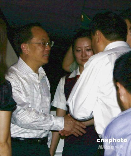 6月27日晚9點(diǎn)55分,香港特首曾蔭權(quán)一行乘坐CA428航班抵達(dá)成都雙流國(guó)際機(jī)場(chǎng),28日將與澳門特首何厚鏵一起前往彭州和都江堰看望災(zāi)民及考察災(zāi)后重建情況。中新社發(fā) 黃永莉 攝
