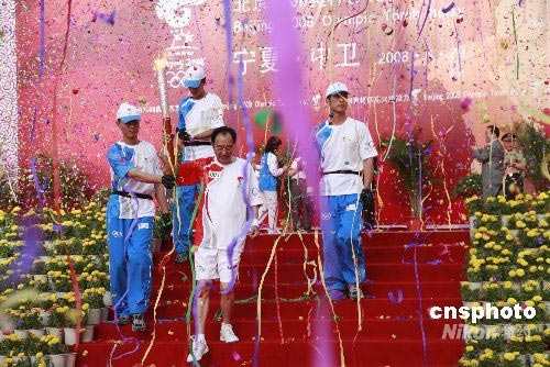 圖:作家張賢亮傳遞奧運(yùn)火炬寧夏第一棒