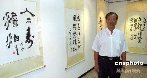 6月29日,臺(tái)灣澎湖本地書(shū)法家藍(lán)重吉的書(shū)法展揭幕,為迎接7月4日的大陸旅游首發(fā)團(tuán),屆時(shí)大陸旅游團(tuán)將攜帶八十多幅作品加入此次展出,兩地書(shū)畫(huà)同好將齊聚一堂,交換心得。中新社發(fā) CNA 攝