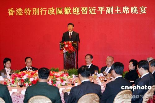 七月七日晚,中國(guó)國(guó)家副主席習(xí)近平出席香港特區(qū)政府歡迎晚宴,并發(fā)表講話(huà)。中新社發(fā) 武仲林 攝
