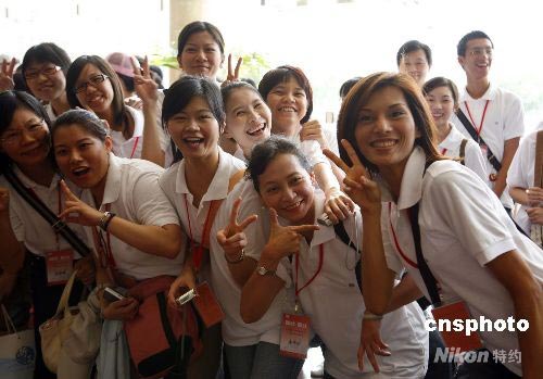 7月11日,臺灣學(xué)生在上海興高采烈地迎接夏令營開營。當(dāng)日,“龍脈相傳緣聚上海——臺胞青年夏令營”在上海開營,來自臺灣政治大學(xué)、成功大學(xué)、海洋大學(xué)、佛光人文學(xué)院的同學(xué),以及在滬的臺生、臺籍青年等百余人參加。中新社發(fā) 潘索菲 攝