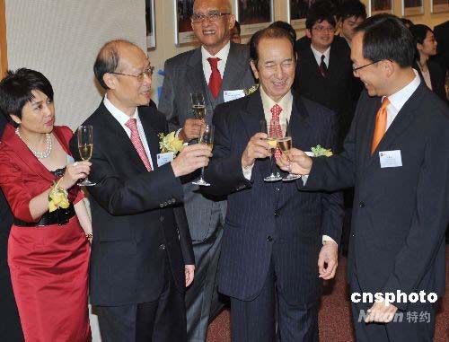 圖:何鴻燊等為澳博上市舉杯慶賀