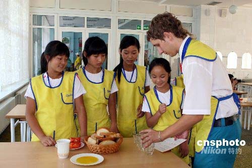 俄羅斯輔導(dǎo)員教地震災(zāi)區(qū)孩子擺餐具