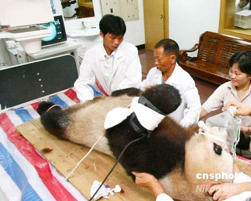 圖:地震災(zāi)區(qū)病號熊貓福州接受體檢(2)