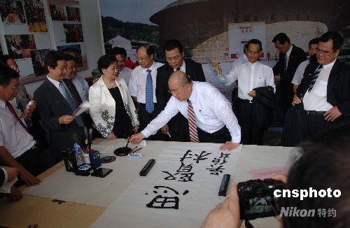 八月十四日,中國國民黨主席吳伯雄回到祖籍地--福建永定縣下洋鎮(zhèn)思賢村,在參觀思賢小學(xué)揮毫寫下“思賢村”三個(gè)大字。當(dāng)天,吳伯雄夫婦時(shí)隔八年再度返鄉(xiāng)祭祖。中新社發(fā) 鄭祚聲 攝