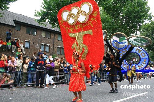 圖:北京奧運(yùn)會(huì)徽亮相英國諾丁山狂歡節(jié)