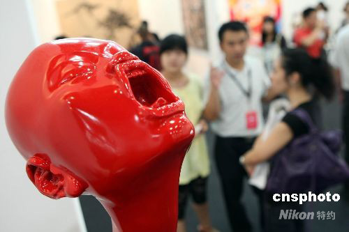 9月10日,2008上海藝術(shù)博覽會(huì)開(kāi)幕。本屆藝博會(huì)吸引了來(lái)自中國(guó)、美國(guó)、法國(guó)等20個(gè)國(guó)家的140余家海內(nèi)外優(yōu)秀畫(huà)廊前來(lái)參展。中新社發(fā) 湯彥俊 攝