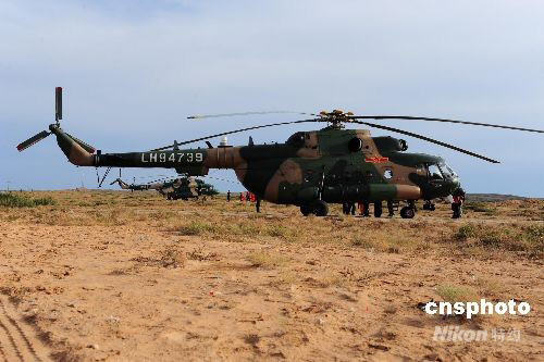 圖為擔(dān)負(fù)空中搜救任務(wù)的陸航直升機(jī)在主著陸場區(qū)待命。中新社發(fā) 周敬波 攝