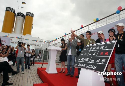9月26日,馮小剛攜09年賀歲新片《非誠勿擾》全體主創(chuàng)人員搭載歌詩達豪華郵輪完成電影拍攝返滬,并在郵輪上舉行了《非誠勿擾》的關(guān)機儀式。中新社發(fā) 湯彥俊 攝