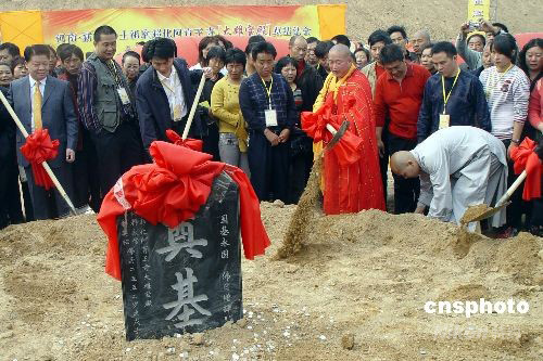 十月七日,少林寺方丈、超化寺住持釋永信大和尚等出席少林下院河南新密超化寺大雄寶殿奠基儀式。超化寺大雄寶殿高約二十六點二米,長約六十二點七米,寬約四十六點八米,面積二千九百三十四點三六平方米,完工后可容納一千二百五十人。中新社發(fā) 李志全 攝