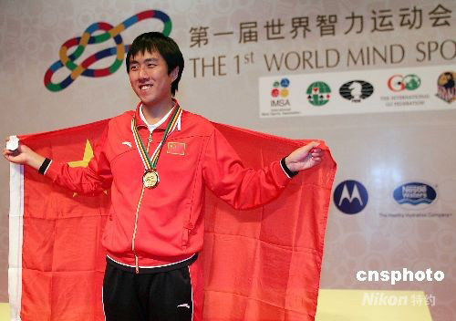 10月8日,首屆世界智力運(yùn)動會國際象棋25分個人快棋賽在北京會議中心結(jié)束。中國棋手卜祥志加賽擊敗烏克蘭棋手科里波夫,獲得智運(yùn)會中國首枚國象金牌。中新社發(fā) 富田 攝
