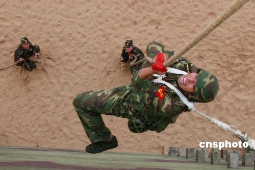 10月16日至20日,濟(jì)南軍區(qū)組織為期四天的偵察兵作戰(zhàn)骨干大比武活動,此次比武演練。在課目、內(nèi)容設(shè)置上借鑒“愛爾納”國際偵察兵比武法則,采取動態(tài)考核和靜態(tài)考核結(jié)合的方式,以實戰(zhàn)背景為牽引,以高新裝備為平臺,突出孤軍作戰(zhàn)、體系作戰(zhàn)、信息化作戰(zhàn)等多種演練方式。圖為官兵采取“空手導(dǎo)”方式進(jìn)行攀登訓(xùn)練。中新社發(fā) 崔成俊 攝