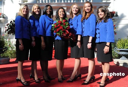 十七歲的華裔高中生李君慧(中)十月二十一日當選二00九年度美國“玫瑰皇后”,她將引領二00九年元旦舉行的第一百二十屆帕薩迪納玫瑰花車大游行和九十五屆“玫瑰碗”杯美式足球總決賽。中新社發(fā) 張煒 攝
