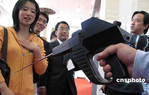 10月28日,“第十二屆國際消防設備技術交流展覽會”在北京全國農(nóng)業(yè)展覽館開幕。國際消防協(xié)會聯(lián)盟、世界義勇消防聯(lián)盟,及美國和日本消防協(xié)會、德國消防促進會等國際知名消防組織參展。圖為曾在中國汶川地震中立下汗馬功勞的生命探測儀器,該儀器可探測出500米內(nèi)的人體生命,對人體心臟產(chǎn)生的微電磁波十分敏感,其探頭有自動尋的功能。中新社發(fā) 鄒憲 攝