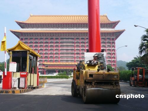 圖:臺(tái)北圓山大飯店平整路面迎接陳云林