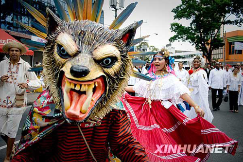 11月3日,在巴拿馬首都巴拿馬城,身著傳統(tǒng)服裝的民眾參加國(guó)慶節(jié)慶祝游行。當(dāng)天,巴拿馬舉行盛大游行慶祝獨(dú)立105周年。