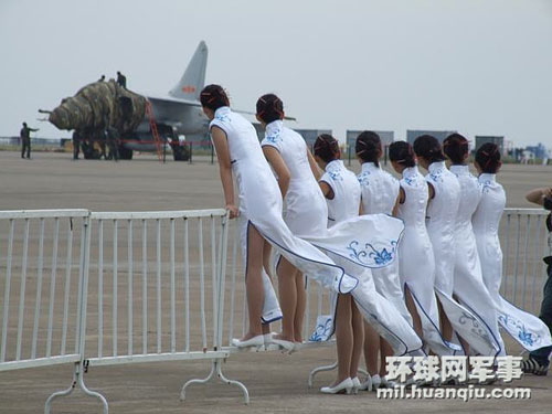 組圖:活潑迎賓小姐為見殲10跳欄桿(2)