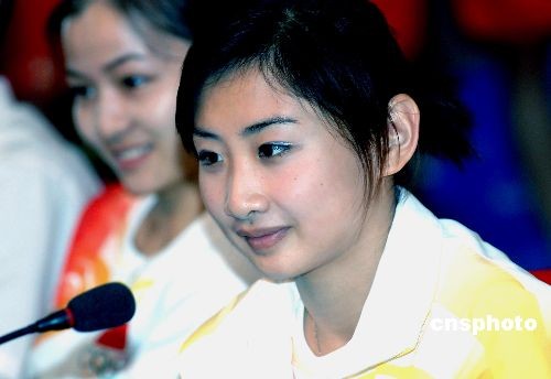圖為被譽(yù)為中國(guó)最美奧運(yùn)冠軍的何雯娜與福州大學(xué)的學(xué)生們親切交流。中新社發(fā) 劉可耕 攝