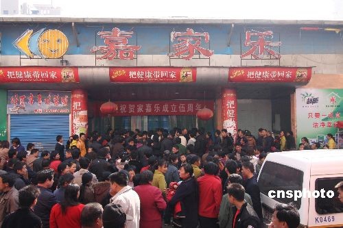12月10日,湖南省婁底市民營(yíng)市場(chǎng)嘉家樂超市遭數(shù)百群眾哄搶后吸引許多人圍觀。
