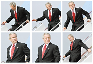 美國(guó)媒體捕捉到了布什走下“空軍一號(hào)”時(shí)差點(diǎn)跌倒的尷尬一幕。