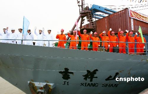 12月15日上午,由福建省人民政府、國(guó)臺(tái)辦、交通運(yùn)輸部共同舉辦的海峽兩岸海上直航福州港首航儀式在福州港青州港區(qū)舉行。據(jù)悉,當(dāng)日,福建全省沿海首航的有10艘船舶,分別從福州港、廈門(mén)港、泉州港開(kāi)往高雄港、基隆港、臺(tái)北港、臺(tái)中港、布袋港。由福州港開(kāi)出的共有4艘船舶分別為:華航3號(hào)、吉祥山號(hào)、金海緣號(hào)、興華號(hào)。據(jù)了解,福建省政府、國(guó)臺(tái)辦、交通運(yùn)輸部、福州市領(lǐng)導(dǎo)和福建省直有關(guān)部門(mén)、福州市直有關(guān)部門(mén)、口岸聯(lián)檢各單位的領(lǐng)導(dǎo),以及首航船公司、碼頭公司、從事試點(diǎn)直航、兩岸三地彎靠及“小三通”客貨船公司的代表、臺(tái)灣船公司及駐榕辦事處代表等共500多人參加了首航儀式。