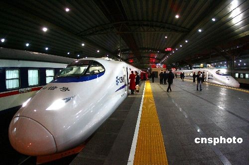 12月21日21時(shí)39分,D301次CRH2型大編組臥鋪動車組從北京首發(fā)前往上海。它的開行將徹底改變中國鐵路沒有臥鋪動車組的歷史,并開啟鐵路在動車組上推出“服務(wù)超越航空”的服務(wù)提升計(jì)劃。中新社發(fā) 富田 攝
